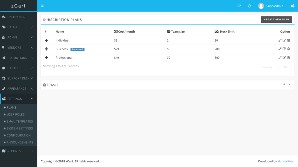 Create subscription plans for the vendors. Vendors will see the offers on the merchants landing page and will be able to register to any of the plans you created here. This subscription is optional. If you don’t want a subscription-based marketplace then you can disable the subscription completely. We’ll discuss everything here.