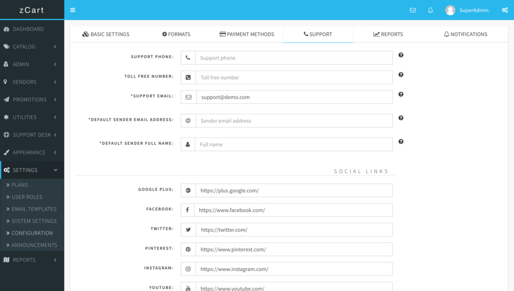 SETTINGS  SYSTEM SETTINGS  SUPPORT