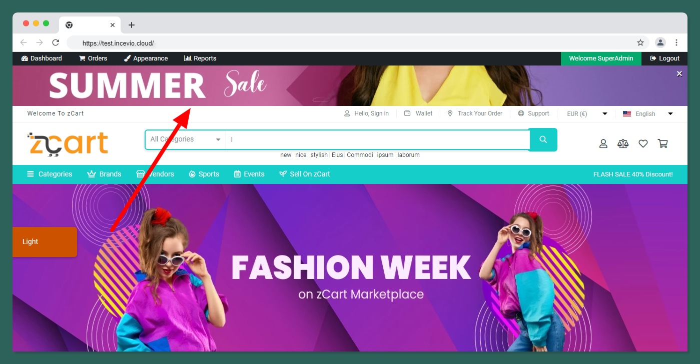 Access the top promotional banner settings and upload the desired promotional image or banner. Ensure it aligns with your campaign’s branding and messaging. You can set an internal link too. So that user can go directly to the desired page by clicking on the banner.