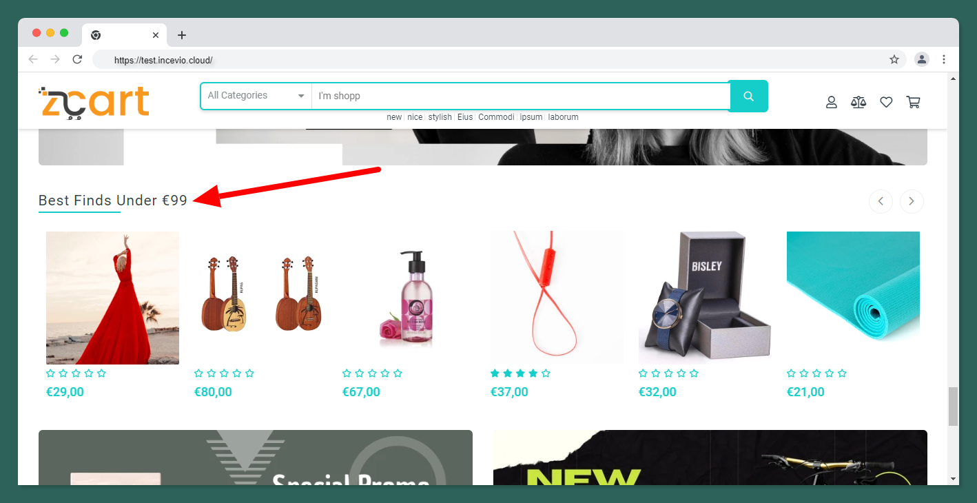 Configure the “Best Finds Under” section by specifying the criteria and parameters for showcasing your top deals or products that fall within a specific price range.