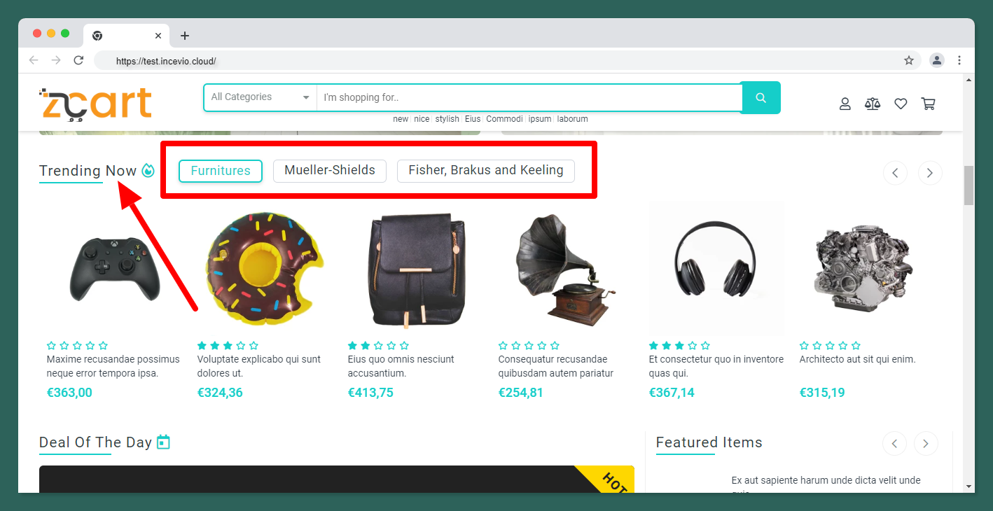 Set up the “Deal of the Day” by selecting a featured product for your daily promotion. Make sure to update this section regularly to maintain the freshness of your deals. And Choose specific items or products that you want to showcase in the “Featured Items” section. Select products that are currently in demand or align with your promotional strategy.