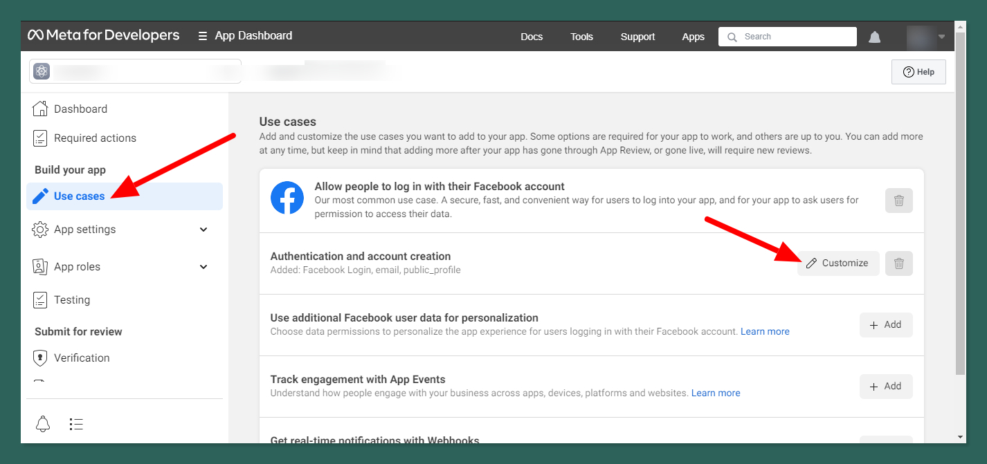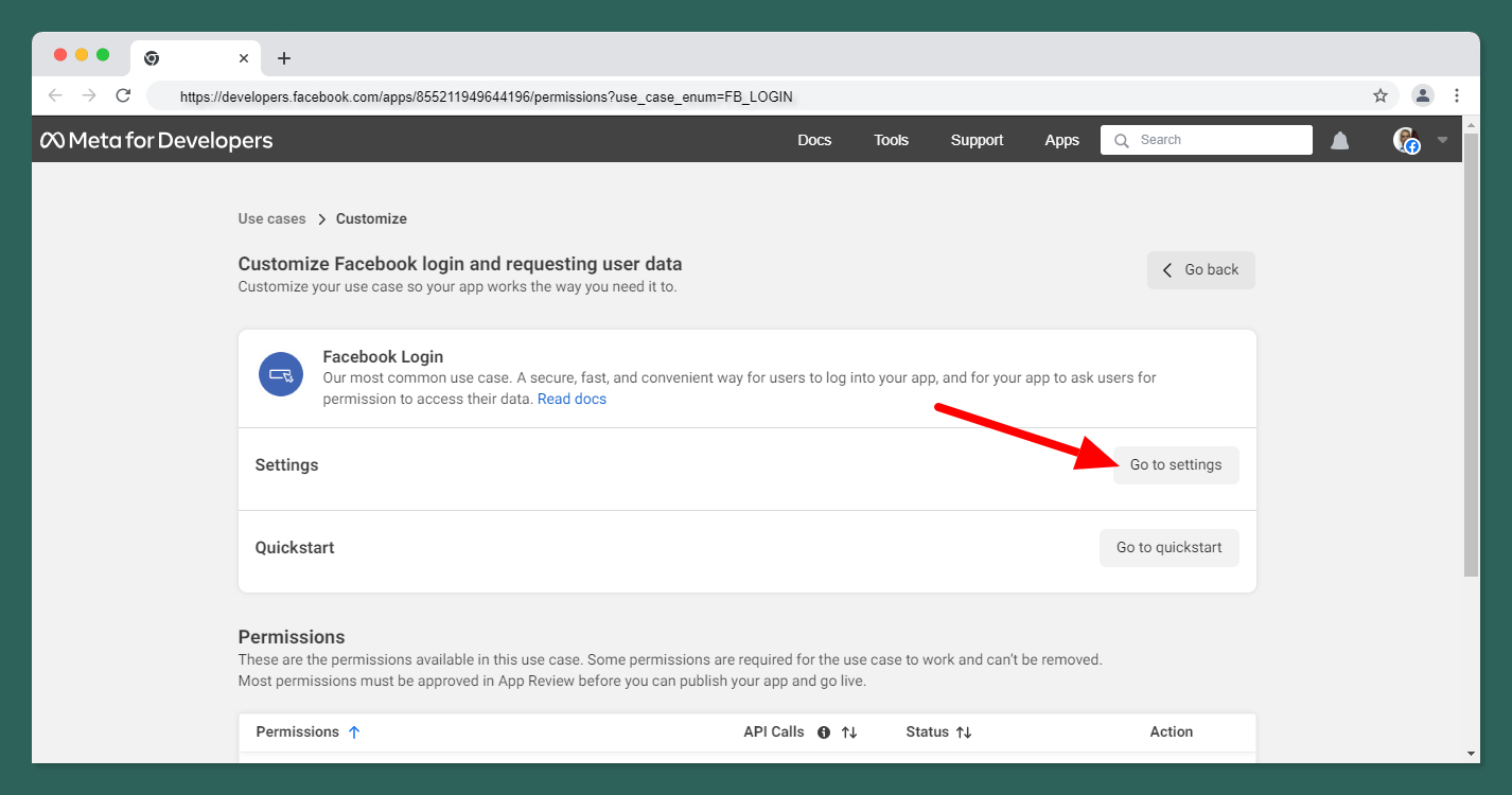 Now go to the Use Cases>>Customize>>Facebook Login>>Settings .