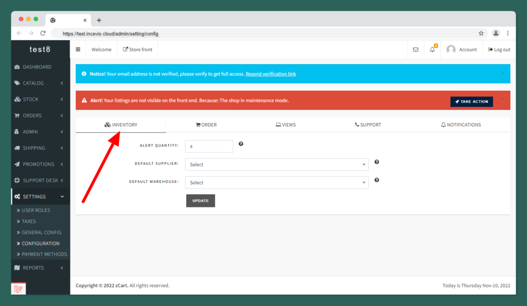 Step 2: You can set the Inventory stock alert quantity, default Supplier, and default warehouse.