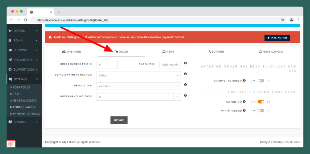 Step 3: You can set the order number prefix and suffix as per your need. You can set the default payment method, for a new order this payment method will be pre-selected.