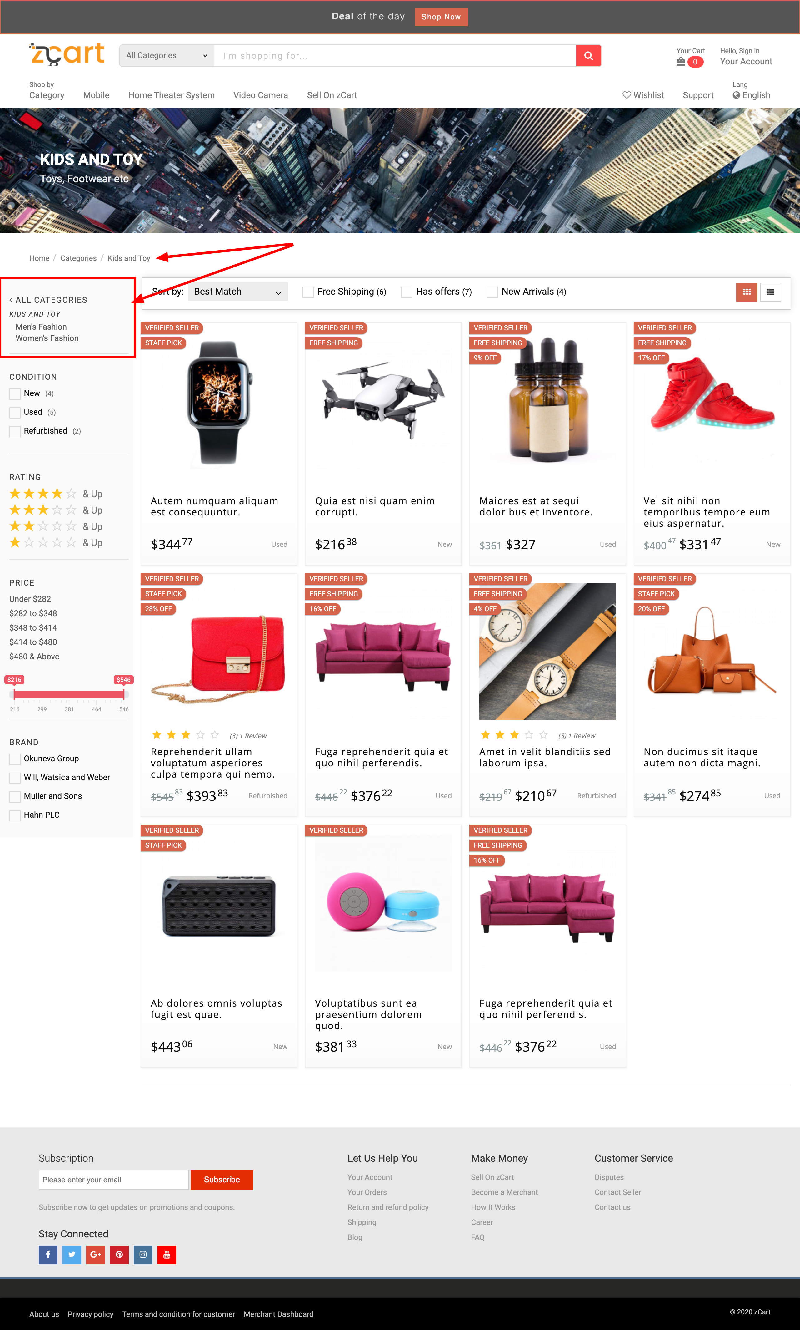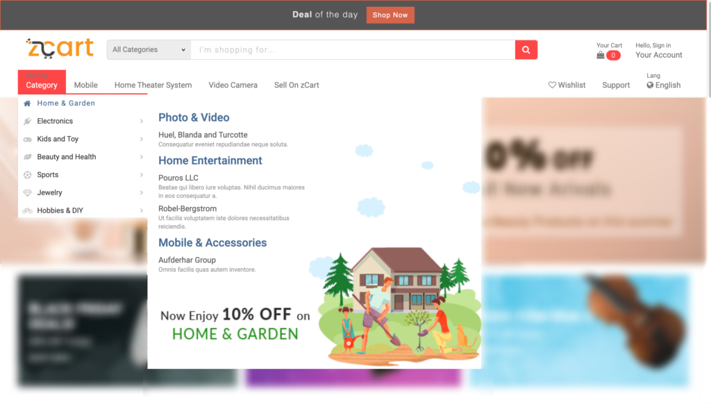 The category is the final label. All products will be directly under the category. A feature image can be added with for every category that will be placed as a banner on top of the category listing page. This image can describe the category better. The image size should be 1280px X 300px to view properly.