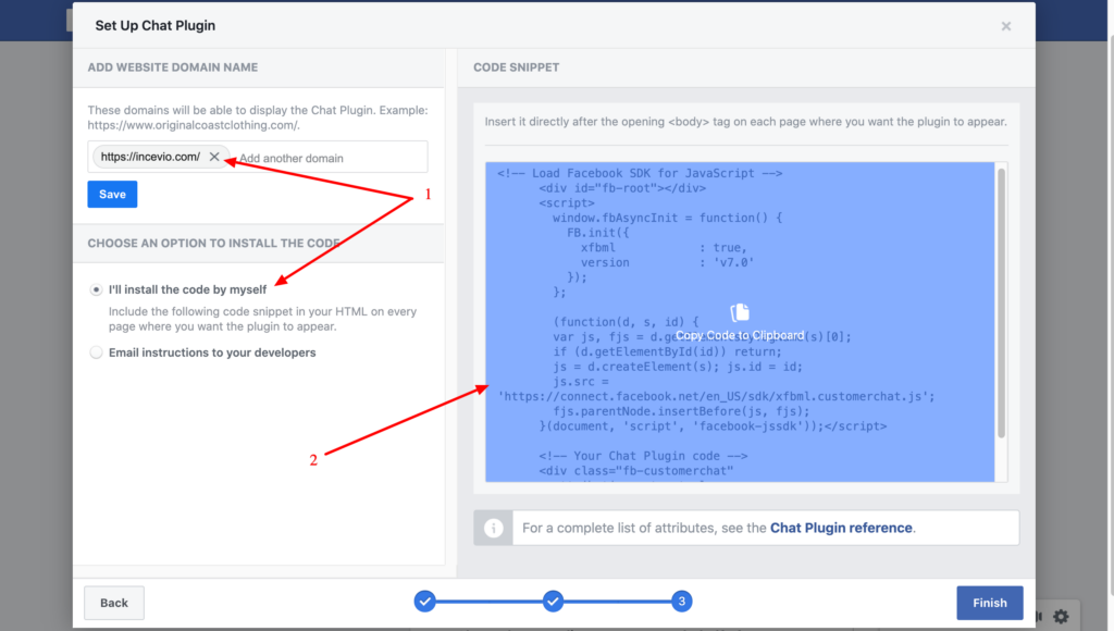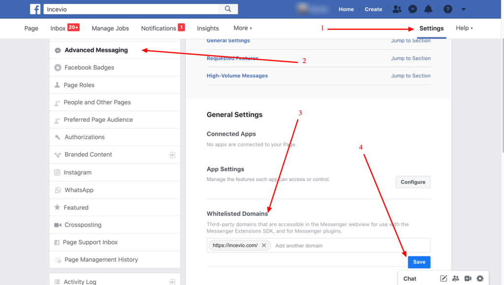 3. Scroll down to Whitelisted Domains and enter your website URL. This must include the https:// protocol. Example: https://incevio.com/
