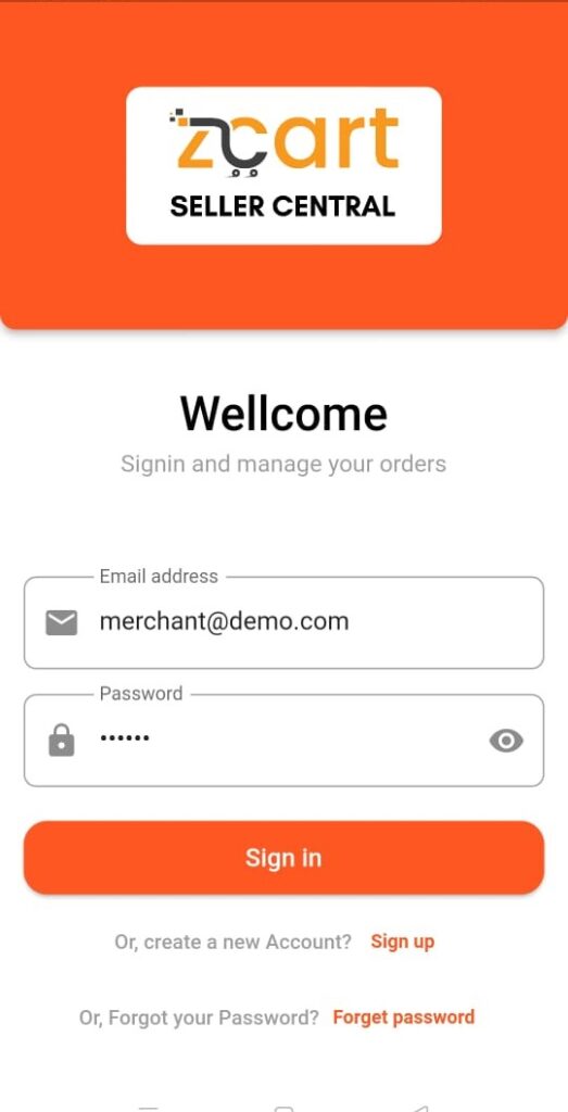 Log in with the existing account– Already registered sellers are able to log in with their credentials.