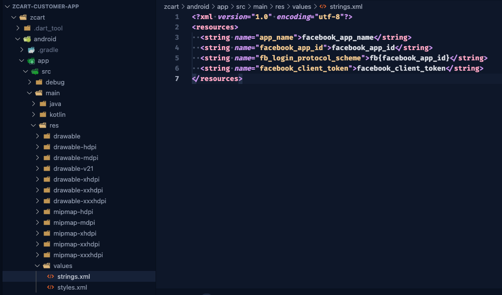 • Open your /android/app/src/main/res/values/strings.xml file, or create one if it doesn’t exists.