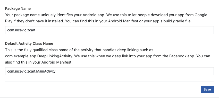 5. Associate Your Package Name and Default Class with Your App. You must use your package name which one you gave in the previous step.