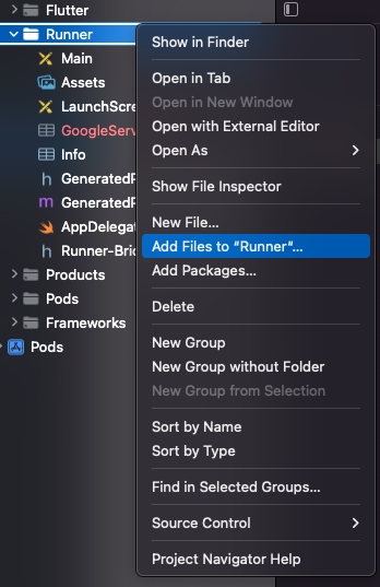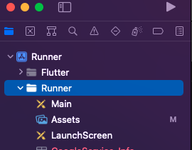 • Now you need to add this PLIST file into the iOS folder of the project. Firs we need to open the iOS section in the Xcode and open the Runner directory.
