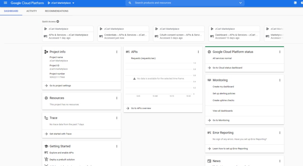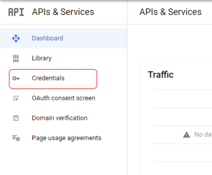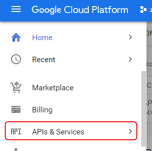 • Tap to the menu button in the left corner and a menu drawer will be opened. Select APIs & Services. A new page will open.