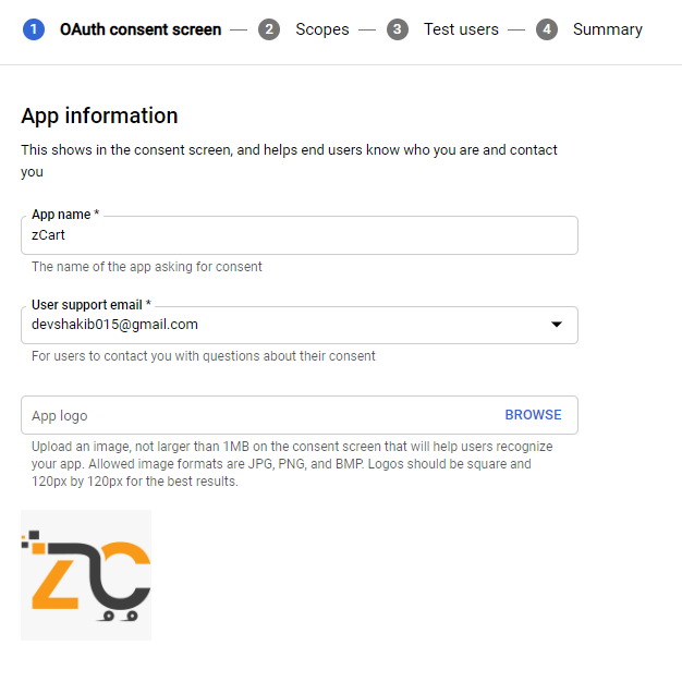 • Click the OAuth consent screen. It will take you a new page and this button will be selected.