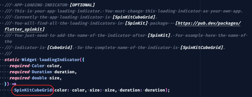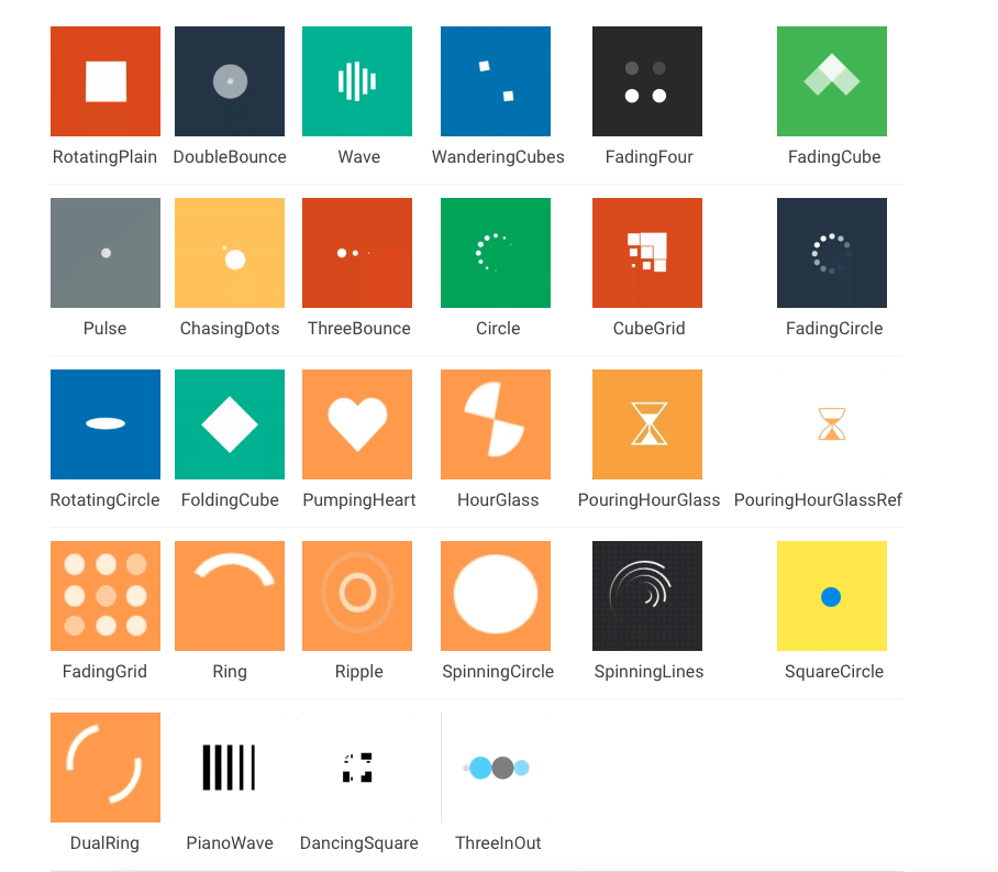 Change the name with the name of the loading widget you want from above. Currently it has used the ‘CubeGrid’. The naming will be like ‘SpinKit(WidgetName)’.