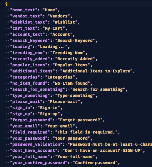 The file will contain items like this. In the map the key must be the same but the values will be changed to your desired language.