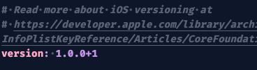 - You will see there is a variable named version. Currently the version is 1.0.0+1. 1.0.0 is the version and after the ‘+’ sign, 1 is the build number. You can change the build number every time you build a new app.